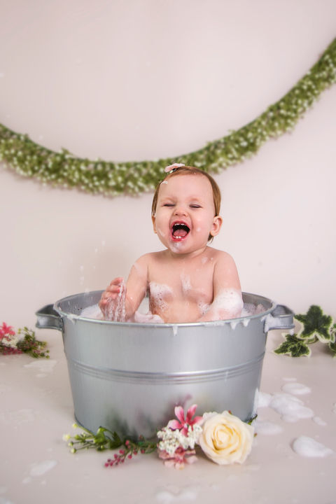 I also offer a splash session after the cake smash which is a fun way of cleaning up a bit afterwards. There's plenty of bubbles involved and lots of splashing is encouraged!